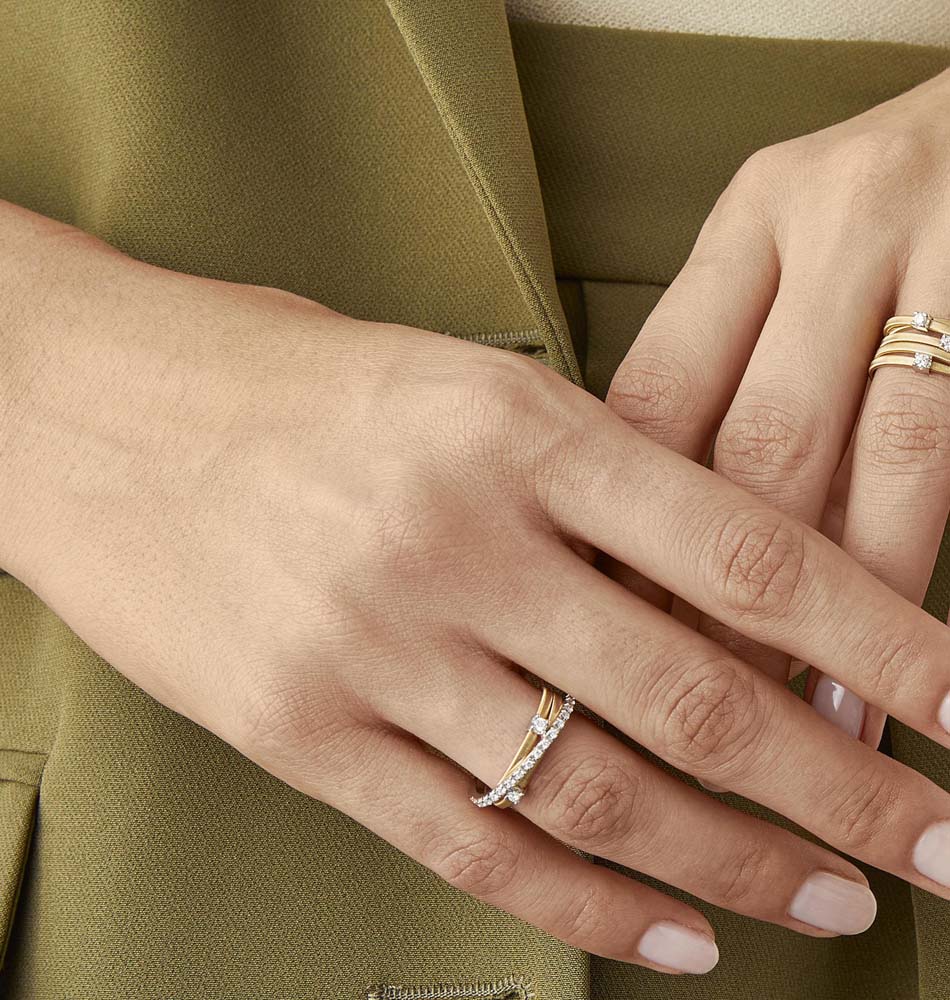 Anillo Marco Bicego colección Goa 3 bagas de hilo de oro amarillo retorcido a mano y oro blanco con brillantes 0.19ct