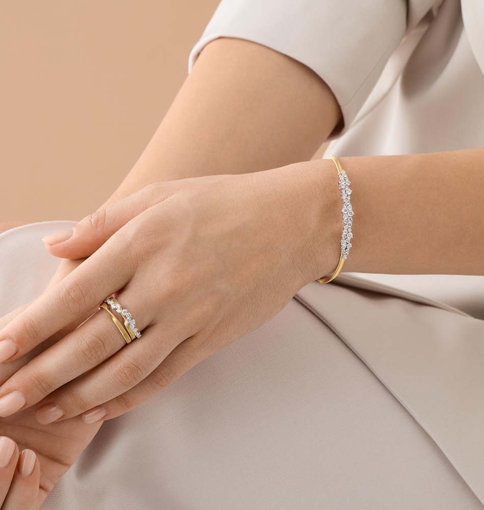Anillo Marco Bicego colección Marrakech 2 tiras de hilos de oro y 1 tira central con diamantes (0.569ct F-G/VVS-VS) en oro blanco.