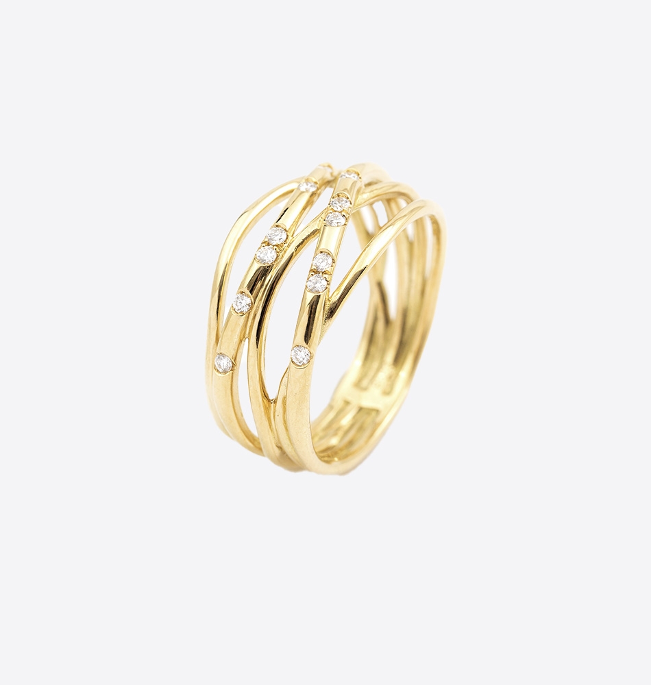 Anillo Romeo hilos de oro amarillo entrelazados con brillantes 0.033ct
