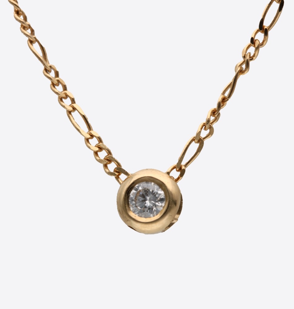 Colgante D&D con brillante de 0.13ct, G, VS, montado en chatón en oro amarillo. Cadena no inc. en el precio