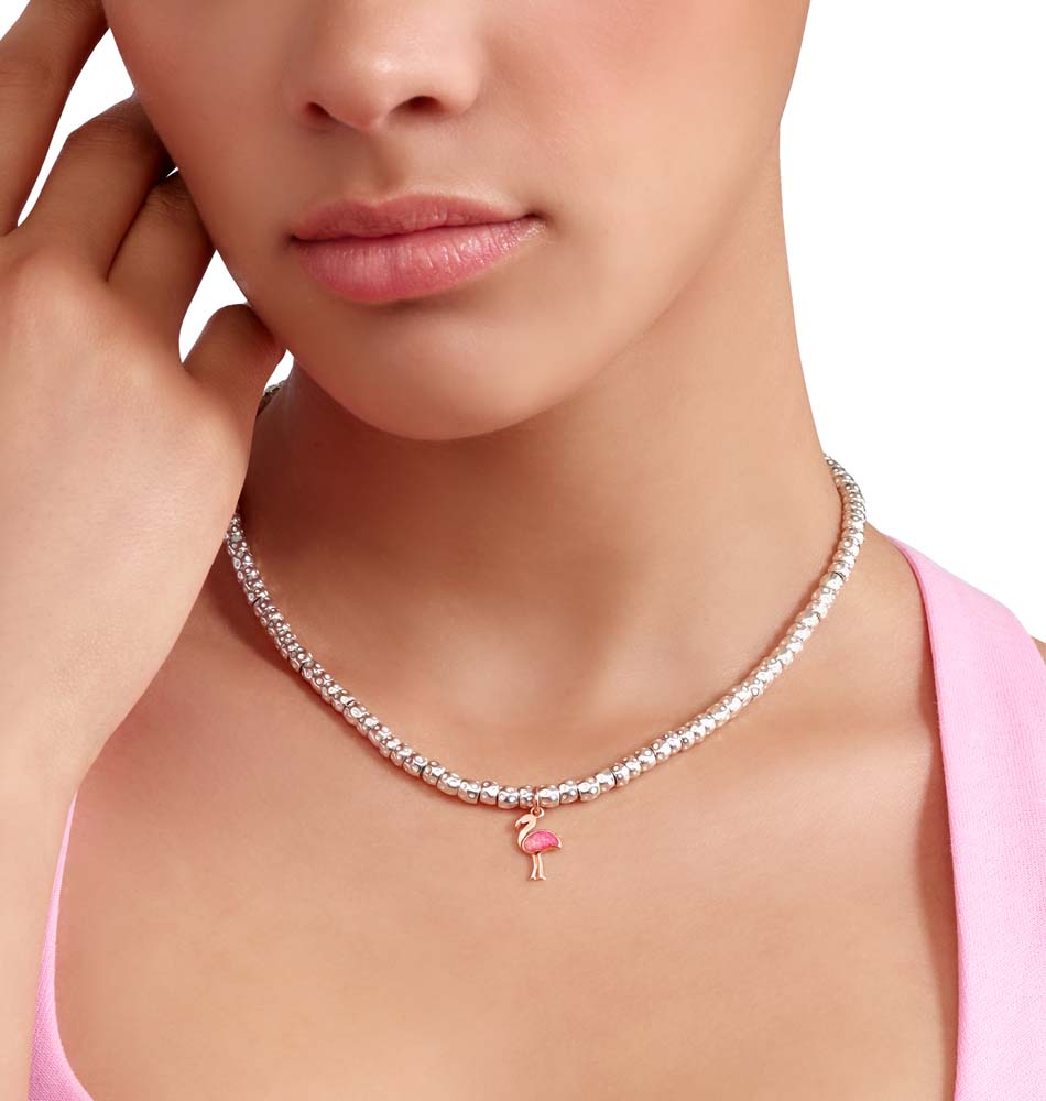 Colgante Dodo Flamenco en oro rosa de 9k y esmalte