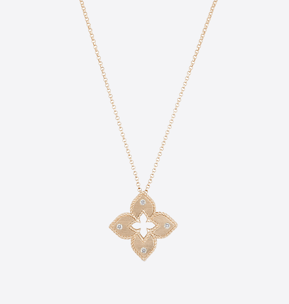Collar Roberto Coin colección Venetian Princess con diamantes (0.0574ct) y un rubí (0.0174 ct) en oro rosa. Peso oro: 5g