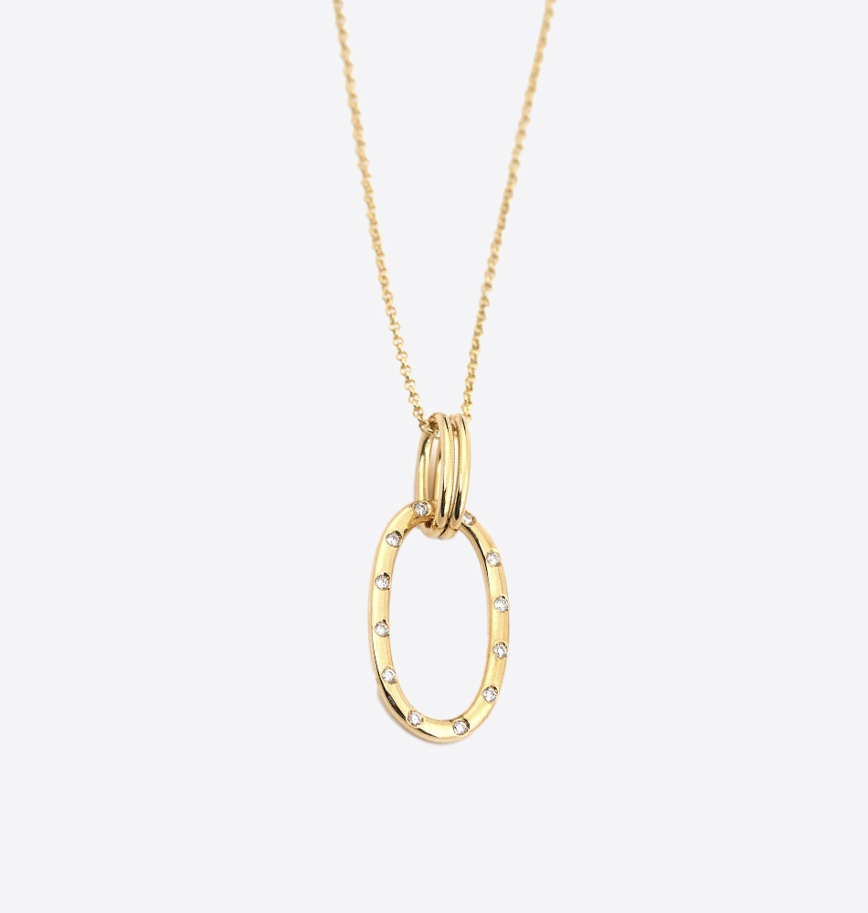Collar Romeo en oro amarillo con colgante eslabón oval con brillantes 0.09ct