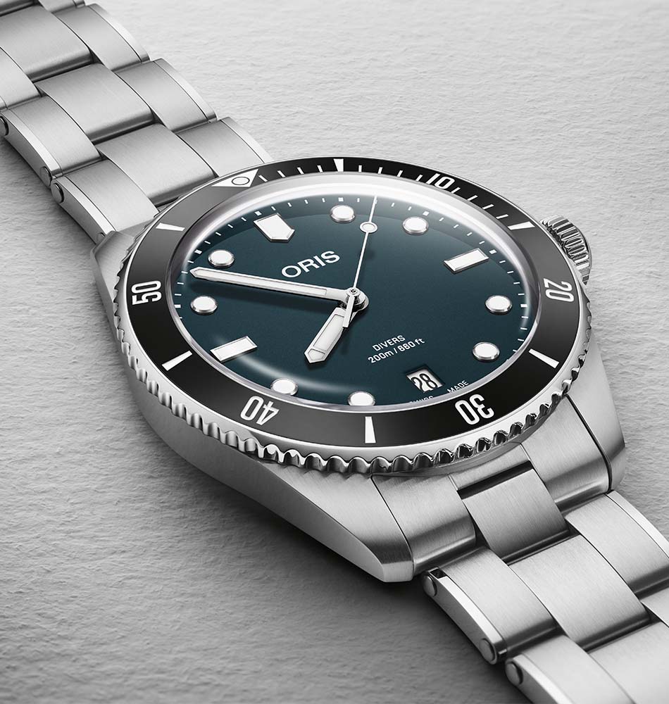 El Oris Divers Date 39 mm Azul es un reloj pensado para acompañarte en cualquier estación del año, inspirado en el emblemático modelo de buceo de Oris de 1960 y en una época marcada por la creatividad y el diseño optimista. Su esfera azul aporta frescura y equilibrio, combinándose con un bisel cerámico con escala minutera que refuerza su carácter deportivo y atemporal.