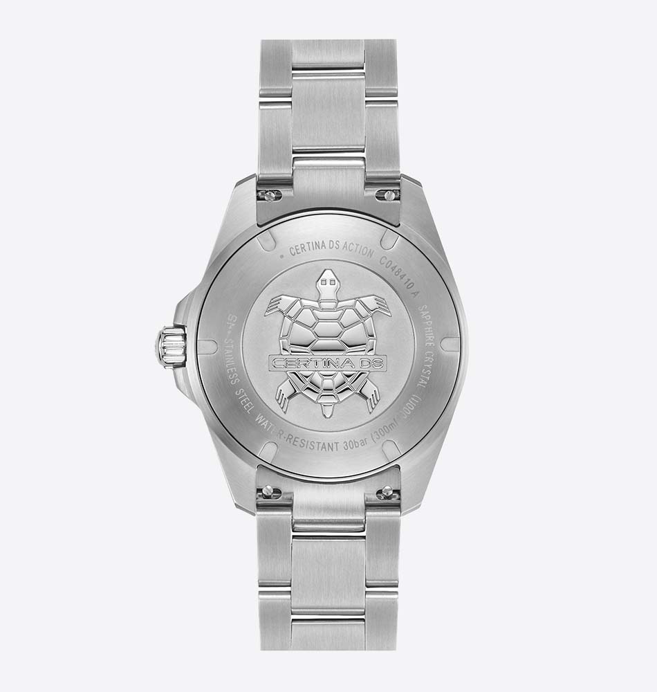 Equipado con un cristal de zafiro antirreflectante y la tecnología DS (Double Security) de Certina, este modelo ofrece una resistencia al agua de hasta 300 metros (30 bares), ideal para el día a día o la aventura submarina. Su movimiento de cuarzo suizo F06.412 Precidrive™ asegura una precisión excepcional, complementada por la función de fin de vida útil (EOL). El Certina DS Action 40 mm es un reloj robusto, fiable y sofisticado para quienes buscan un estilo deportivo con alma marina.