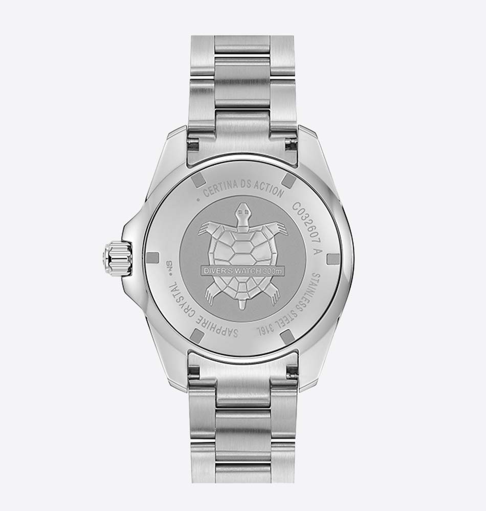 El Certina DS Action Diver 43 mm Powermatic 80 C032.607.11.091.00 combina la potencia técnica de un reloj de buceo profesional con la sofisticación de la relojería suiza moderna. Su diseño refleja precisión, resistencia y estilo atemporal.