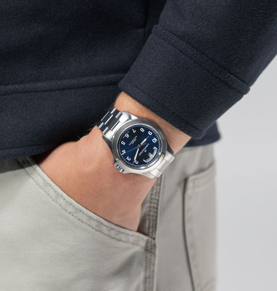 En su interior incorpora el movimiento automático H-40, que proporciona una reserva de marcha de hasta 80 horas y muestra el día de la semana completo sin abreviar, junto con la fecha. Este calibre destaca por su precisión y durabilidad, convirtiéndolo en un aliado perfecto para el uso diario.