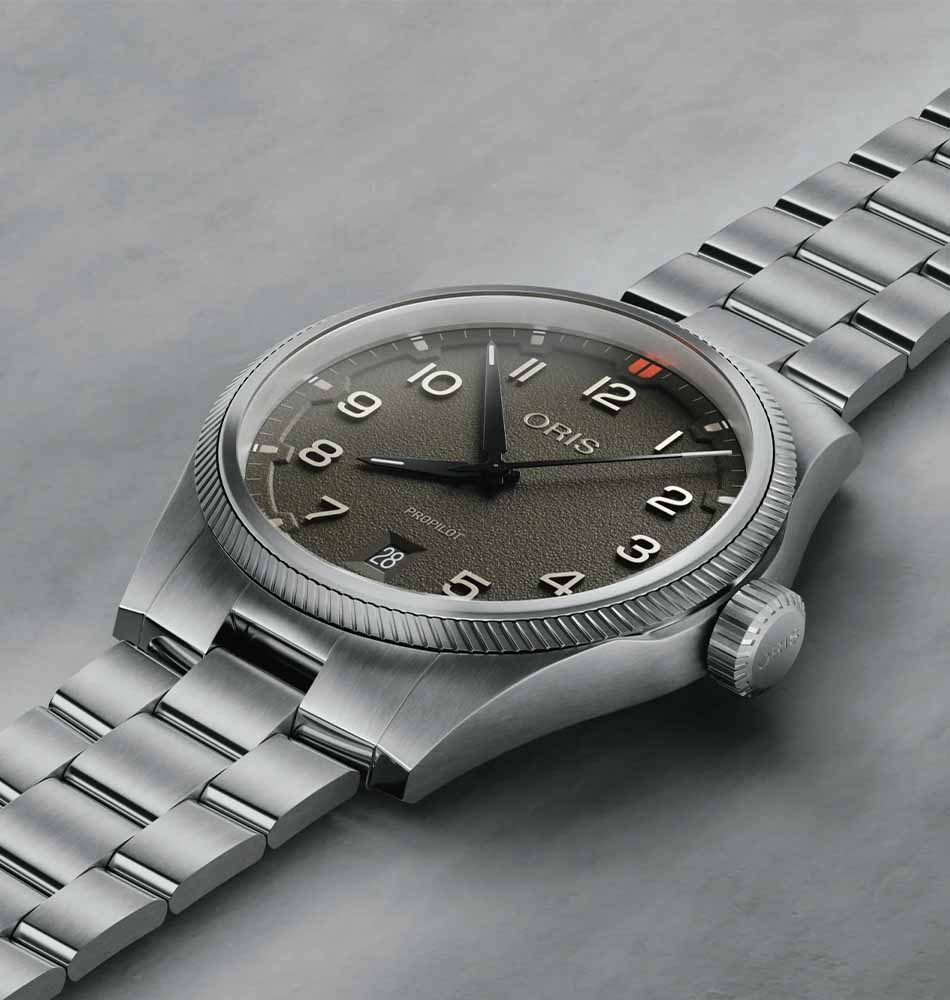 El Oris ProPilot Date 41 mm es la opción ideal para quienes buscan un reloj técnico, versátil y elegante para el día a día, inspirado en la aviación.
