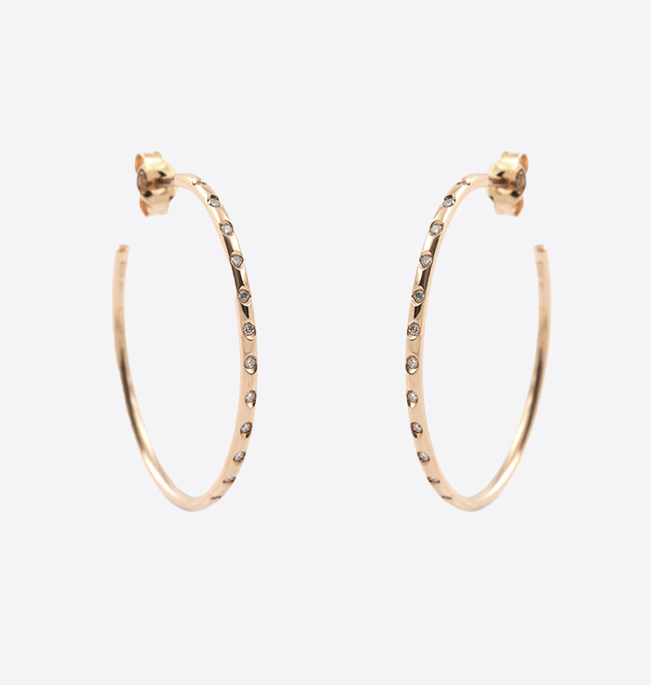 Pendientes Romeo aros ovales de 3cm en oro amarillo con 24 diamantes en oro amarillo.