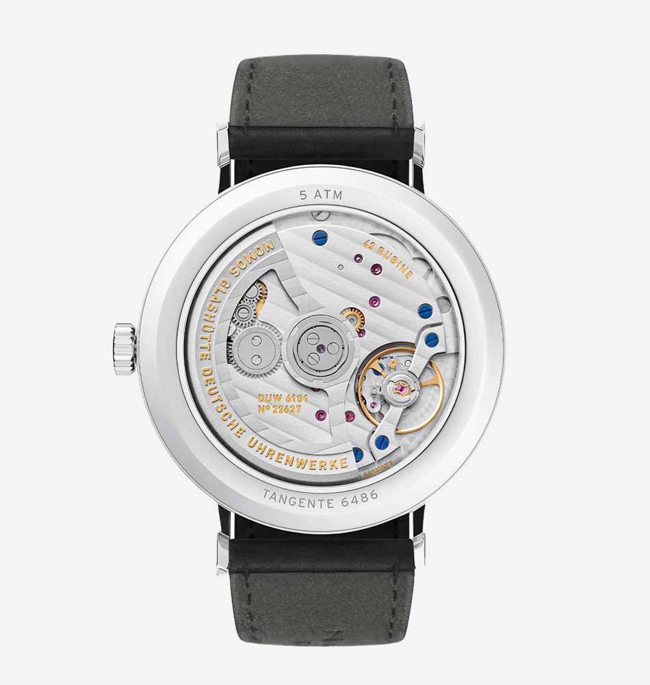 En su interior late el calibre automático DUW 6101, desarrollado en Glashütte. Este movimiento ultraplano con reserva de marcha de 42 horas ofrece precisión, fiabilidad y una complicación de fecha patentada, que distingue a NOMOS entre los grandes fabricantes relojeros.